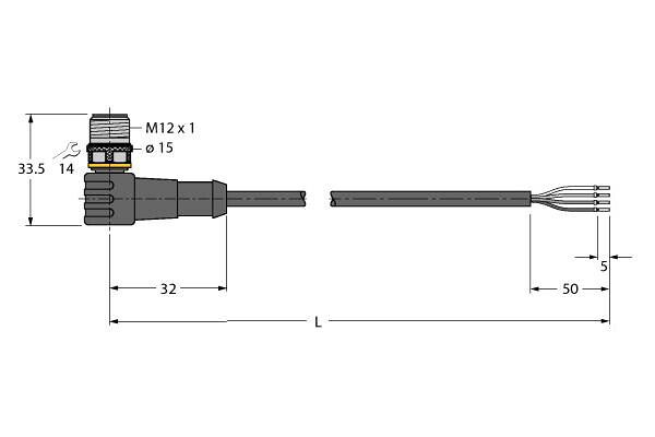 Actuator and Sensor Cable, PVC, Connection Cable, Voltage 250 V, Cable length 2 m, Male M12, angled, 4-pin, Jacket material: PVC, Jacket color: yellow, Resistant to chemicals and oils, Flame retardant, Resistant to acids and alkaline solutions, Resistant to microbes and hydrolysis, LABS free, Protection class: IP67, IP69K, Cable length: 2.0 m