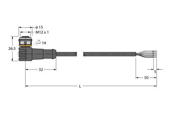 Actuator and Sensor Cable, PUR, Connection Cable, Voltage 250 V, Cable length 70 m, Female M12, angled, 4-pin, Jacket material: PUR, Jacket color: black, Suitable for drag chain use, Resistant to chemicals, UV radiation and oils, Flame retardant (FT2 acc. to UL 1581, IEC 60332-2-2), Resistant to welding sparks, Free from halogen, silicone, PVC and LABS, Particularly resistant to abrasion, Protection class: IP67, IP69K, Cable length: 70 m