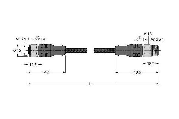 Weld-Splatter Resistant Actuator and Sensor Cable, Extension Cable, Voltage 250 V, Cable length 1.5 m, Female M12, straight, 4-pin, Stainless steel coupling nut/screw, M12 male, straight, 4-pin, Jacket material: PUR jacketed with aramid fibers, Jacket color: yellow, Resistant to welding sparks, Flame retardant, Resistant to chemicals, UV radiation and oils, Free from halogen, silicone, PVC and LABS, Protection class: IP67, IP69K, Protective jacket material: aramid fibers, Tensile strength: 2923 MPa, Breaking strength: 333 N, Elongation at break: 3.6 %, Temperature peaks: up to +200 °C, Cable length: 1.5 m
