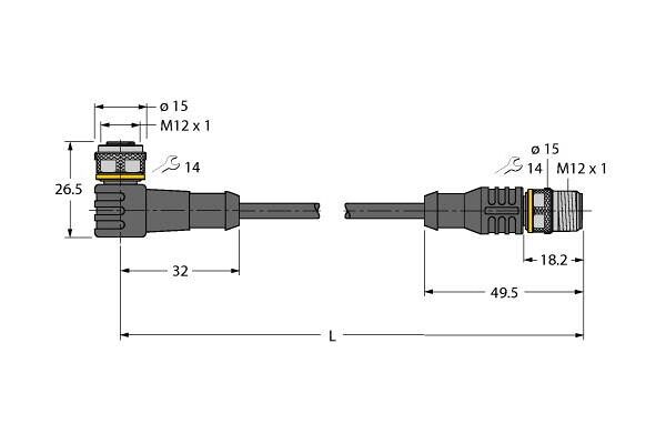 RKC4T-5.5-RSC4T/TXO Actuator and Sensor Cable, PUR, Extension Cable