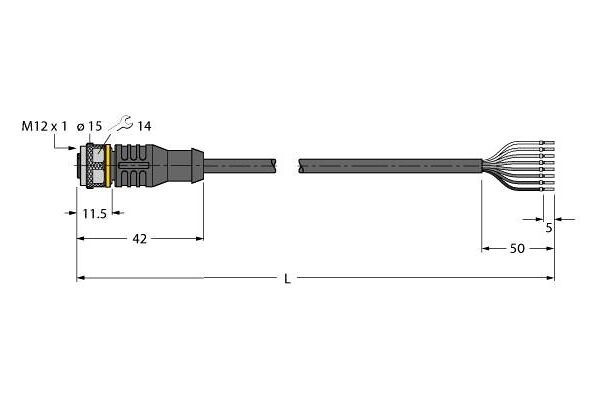WKC8T-4-RSC8T/TXL Actuator and Sensor Cable, PUR, Extension Cable