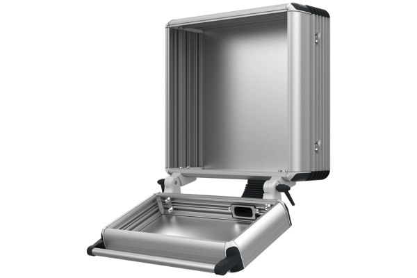 ECO 060 series is a panel to increase the internal usage of the panel with a keyboard. The ECO 060 series is an additional enclosure for increasing the internal usage area of the panel. With its modern line and elegance; together with the articulable of additional panel feature the modularity has reached to a higher level. The internal usage depth of the these panels is 150mm and the direct connection support to the operator arms is provided by the TK060.830 module (connection addition from panel). By means of its unique aluminum profiles, it has a lighter and more robust structure than other examples. The two panels can be opened and closed in the middle by means of the hinge and lock system in the middle part. As an added feature, this panel has outward wings that facilitate cooling. The heat accumulation inside the panel can be easily removed by means of these wings and it ensures optimum operation of the system. It has a sealing feature in case of undesirable conditions like dust etc. The panel profile, panel corners, front and back panels are produced with aluminum, corner covers are produced with plastic material. The keyboard can be adjusted according to the user’s usage angle and the bellows apparatus has been installed for the connection of cables etc. Please contact us for keyboard dimensions.