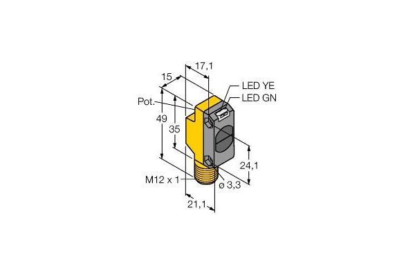 Photoelectric Sensor, Diffuse Mode Sensor, Operating voltage 10…30 VDC, Max. range 450 mm, Male M12 × 1, 4-pin, Protection class IP67, LED all-round visible, Sensitivity adjusted via potentiometer, Operating voltage: 10…30 VDC, NPN switching output, changeover