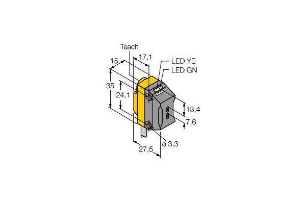 Photoelectric Sensor, Photoelectric Sensor for Plastic Fibers, Operating voltage 10…30 VDC, Cable length 2 m, Cable, PVC, 2 m, 4-wire, Protection class IP67, LED all-round visible, Sensitivity adjusted via teach button, Operating voltage: 10…30 VDC, NPN switching output, Light or dark operation
