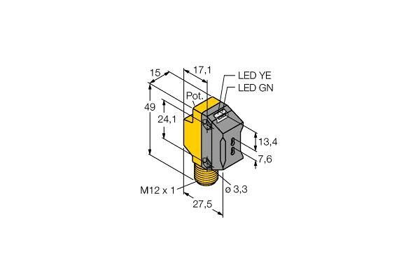 Photoelectric Sensor, Photoelectric Sensor for Plastic Fibers, Operating voltage 10…30 VDC, Max. range 3500 mm, Male M12 × 1, 4-pin, Protection class IP67, LED all-round visible, Sensitivity adjusted via potentiometer, Operating voltage: 10…30 VDC, NPN switching output, changeover