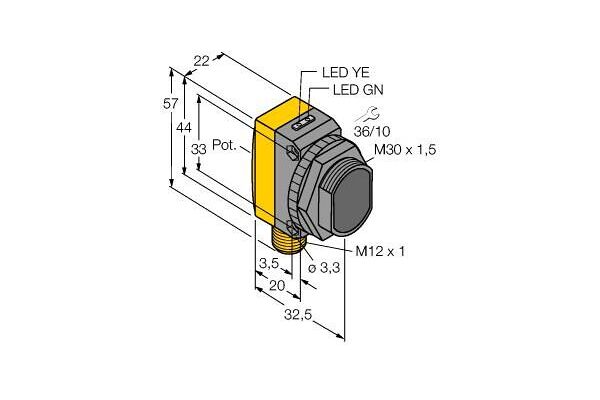 Photoelectric Sensor, Retroreflective Sensor, Operating voltage 10…30 VDC, Max. range 12000 mm, Male M12 × 1, 5-pin, Protection class IP67, LED all-round visible, Sensitivity adjusted via potentiometer, Operating voltage: 10…30 VDC, Switching output, bipolar, Light or dark operation