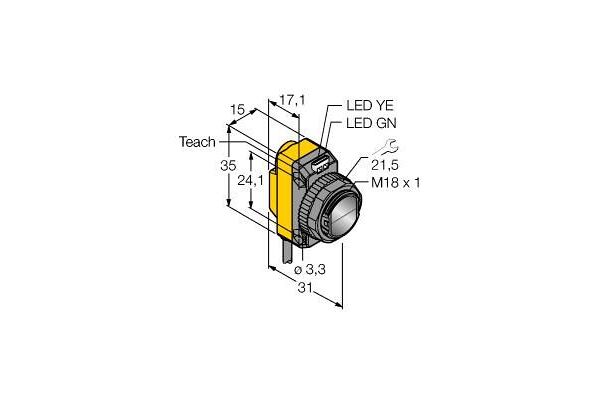 Photoelectric Sensor, Retroreflective Sensor with Polarizing Filter, Operating voltage 10…30 VDC, Max. range 3500 mm, Cable length 9 m, Cable, PVC, 9 m, 4-wire, Protection class IP67, LED all-round visible, Sensitivity adjusted via teach button, Operating voltage: 10…30 VDC, PNP switching output, Light or dark operation