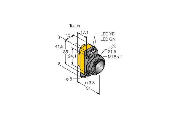 Photoelectric Sensor, Retroreflective Sensor with Polarizing Filter for Clear Object Detection, Operating voltage 10…30 VDC, Max. range 3000 mm, Male M8 × 1, 4-pin, Protection class IP67, LED, all-round visible, Coaxial optics, Sensitivity adjusted via teach button, Operating voltage: 10…30 VDC, 1 × PNP/NPN switching output with IO-Link communication, 1 × PNP/NPN switching output, Transmission of process value and parametrization via IO-link