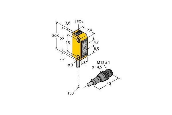Photoelectric Sensor, Retroreflective Sensor with Polarizing Filter, Miniature Sensor, Operating voltage 10…30 VDC, Max. range 1000 mm, Cable length 0.15 m, Cable, PVC, 150 mm, with M12 × 1 male end, 4-pin, Protection class IP67, LED all-round visible, Indication of insufficient excess gain, Glass lens, Operating voltage: 10…30 VDC, Switching output, bipolar, light operation