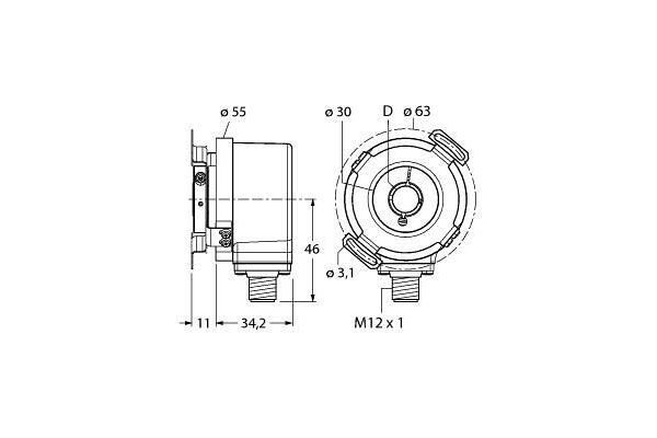 Incremental Encoder, Industrial Line, Operating voltage 10…30 VDC, Resolution incremental 360 ppr, Flange with stator coupling, Ø 63 mm, Hollow shaft, Ø 10 mm, Optical measuring principle, Shaft material: stainless steel, Protection class IP67 on housing and shaft side, ‐40…+85 °C, Max. 6000 rpm (continuous operation 3000 rpm), 10…30 VDC, Push-pull/HTL invertible, Pulse frequency max. 300 kHz, M12 × 1 male connector, 8-pin, 360 pulses per revolution