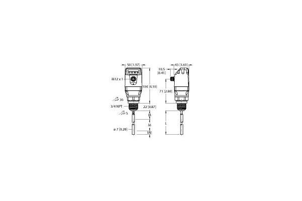 Level Sensor, With Analog Output and 2 × Switching Outputs, Operating voltage 12…30 VDC, Level detection and continuous level measurement, Easy to service and quick to deploy without calibration, Very flexible since probes can be shortened, Easy installation thanks to compact, rotatable housing with display, Process temperature up to 100 °C, Process pressure up to 10 bar, Small blind zones, ideal for small containers, Coaxial tube available for non-metallic tanks, IO-Link 1.1, 12…30 VDC, 1 × analog output 4… 20 mA/0… 10 V (automatic switchover depending on load), 2 × PNP/IO-Link or PNP/NPN transistor outputs, each switchable, Dielectric constant: ≥ 5 for mono-rod probe/rope probe or ≥ 1.8 with coaxial tube, Process connection NPT 3/4" male thread, Probe length 600 mm