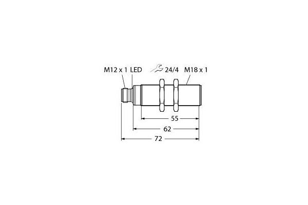 Ultrasonic Sensor, Diffuse Mode Sensor, Operating voltage 15…30 VDC, Max. range 500 mm, Smooth sonic transducer face, Cylindrical housing S18, potted, Connection via M12 × 1 male connector, Temperature compensation, Blind zone: 5 cm, Range: 50 cm, Aperture angle of sonic cone: ±20 °, Analog output, 4…20 mA, Adjustable measuring range