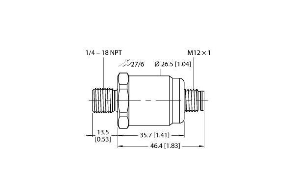 Pressure Transmitter, With Voltage Output (3-Wire), Operating voltage 7…33 VDC, Ceramic measuring cell, Extremely high measuring accuracy, Compact and robust design, Excellent temperature behavior, Pressure range 0…2 psi rel., 7…33 VDC, Analog output 0…5 V, Process connection 1/4"-18 NPT male thread, Plug-in device, M12 × 1